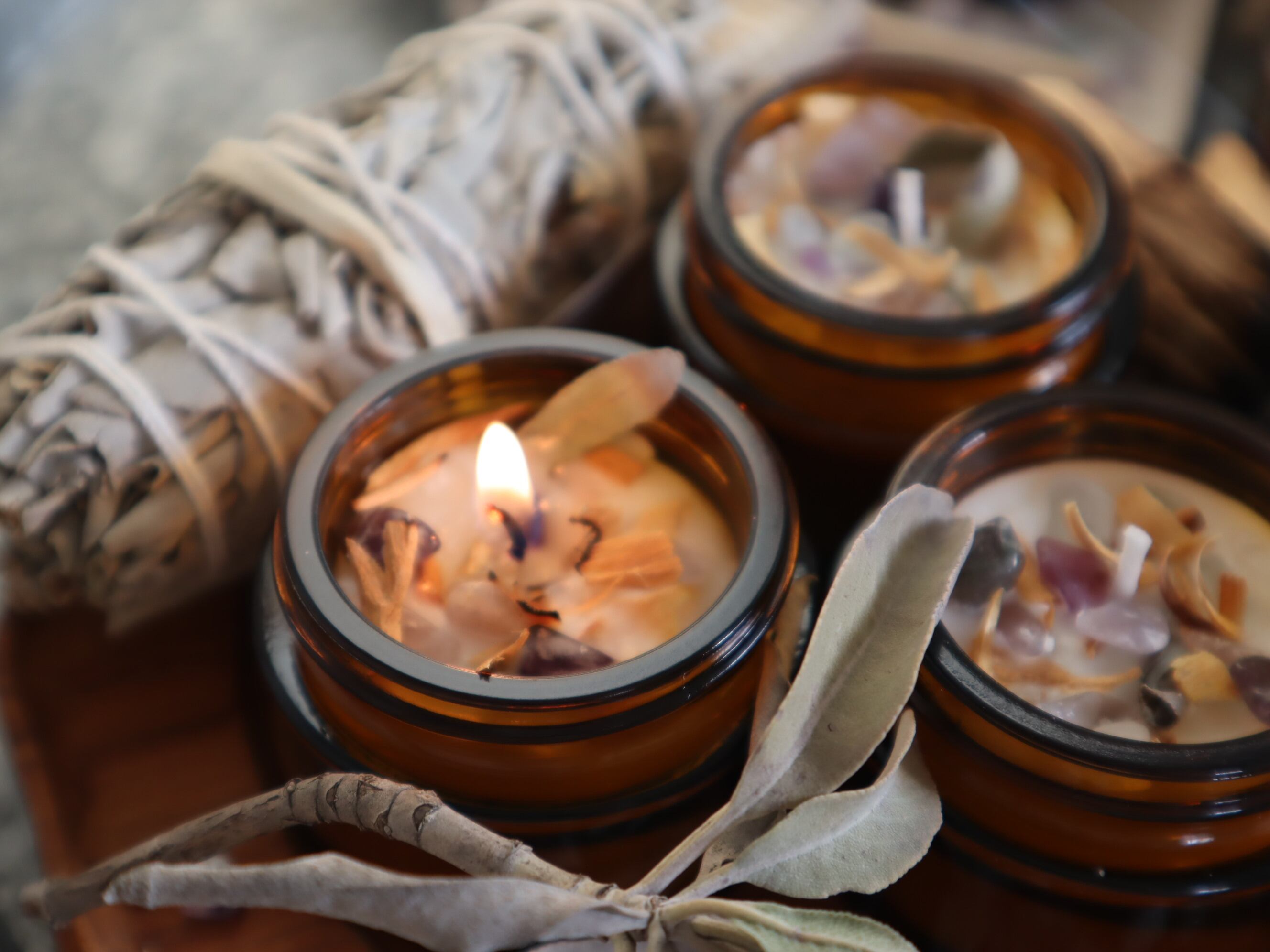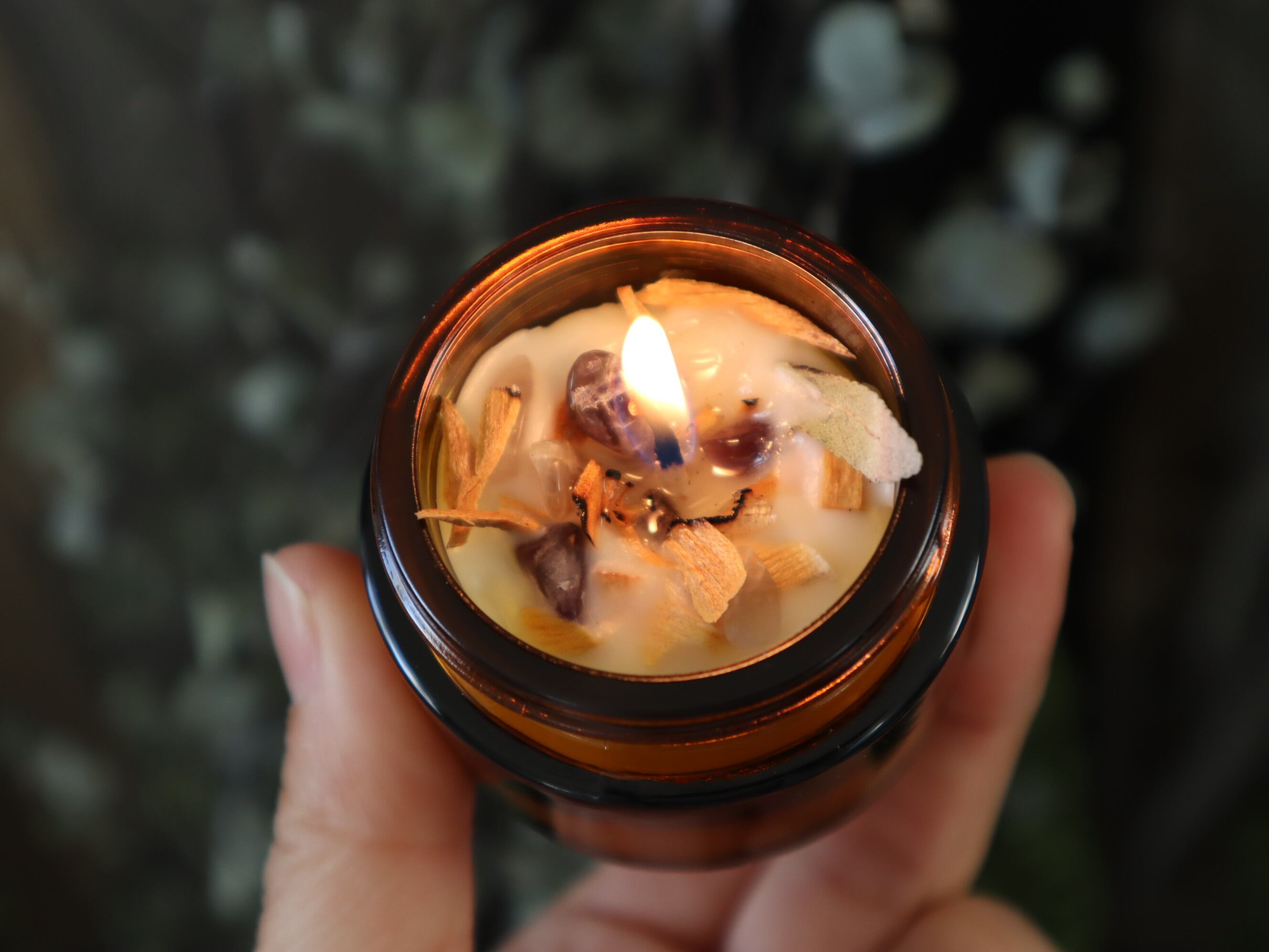 ネイティブアメリカンから聖なる樹といわれているパロサントやホワイトセージ、浄化作用がある天然石を散りばめています。