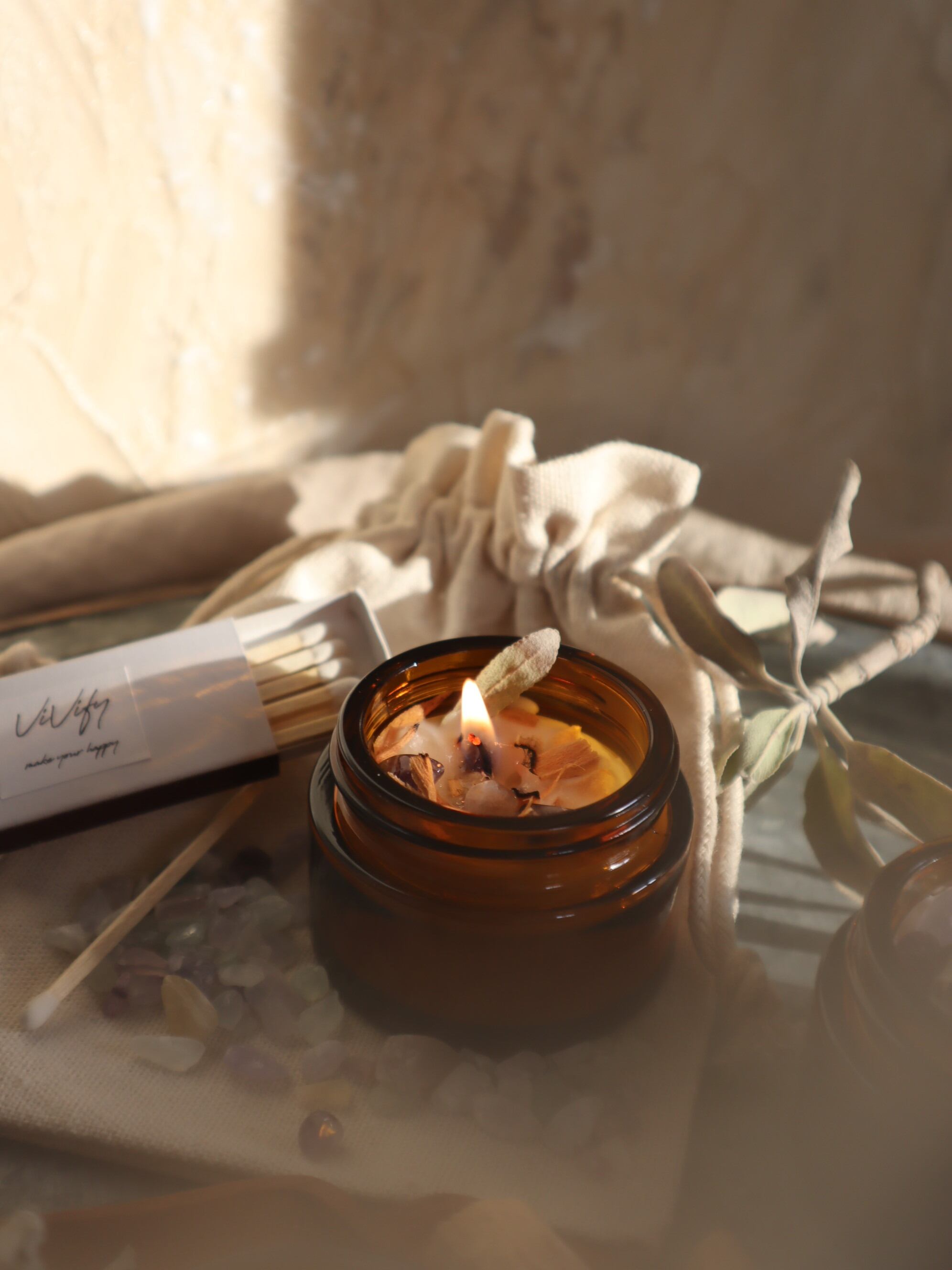 大豆のワックスの優しい香りと植物本来の煙や香りをお楽しみください。