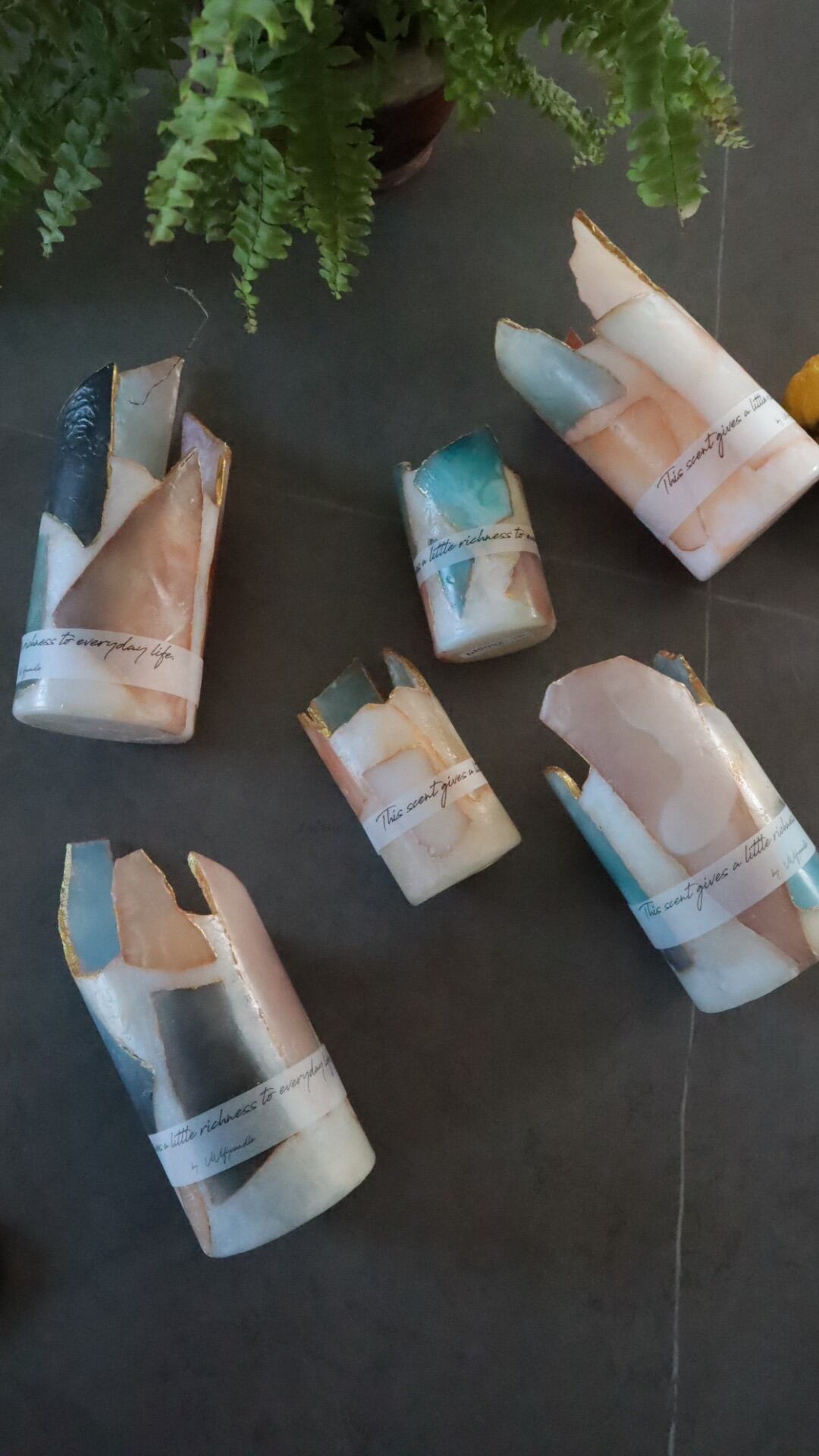 アゲートキャンドルとは、瑪瑙や鉱石のカケラを集めて作り上げたキャンドルのイメージです。